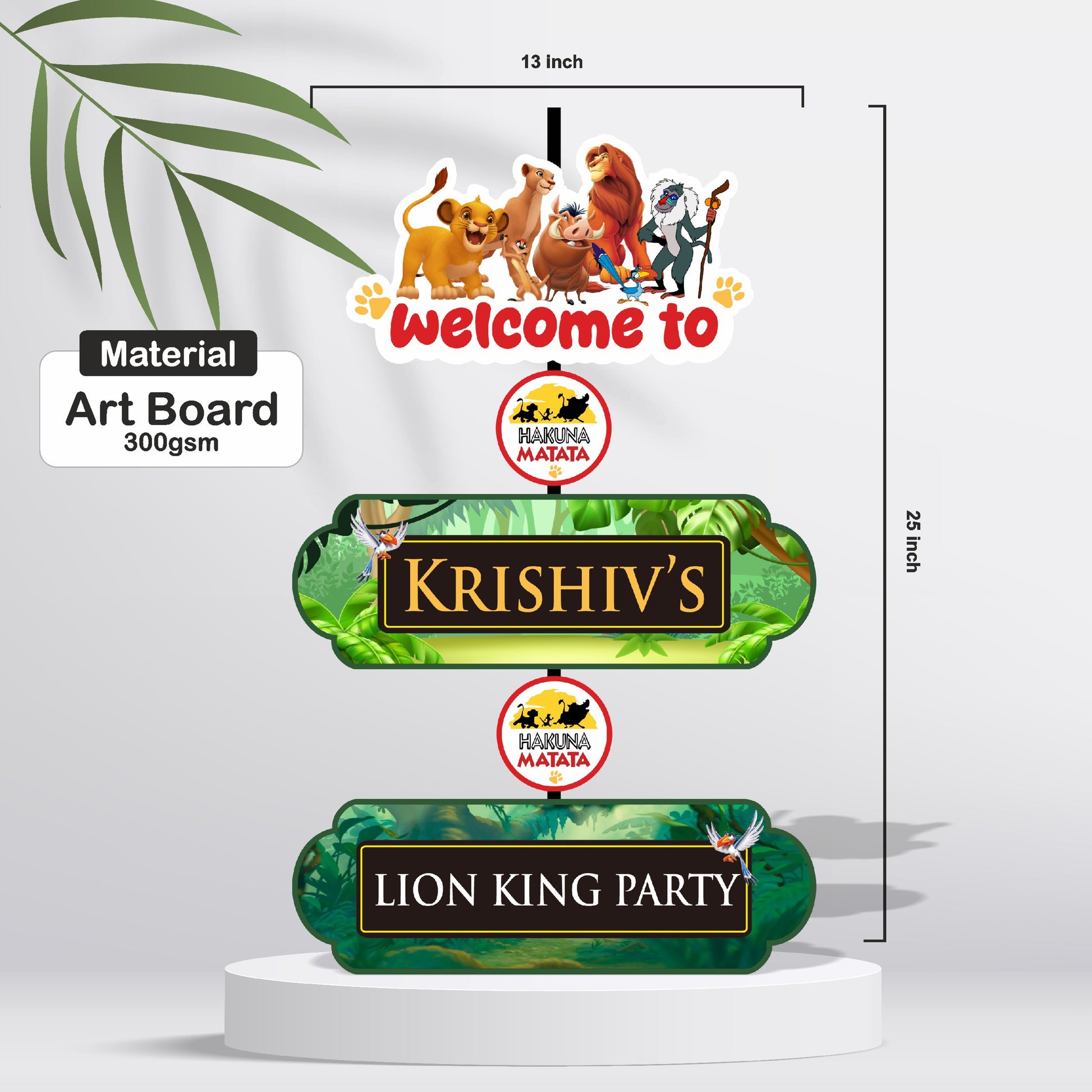 Welcome to the Pride Lands! Our personalized Lion King Door Poster is the perfect way to greet your little cubs and announce the celebration! This vibrant poster features a playful scene with young Simba, Timon, and Pumbaa waving hello from the jungle. It is customized with a bold headline: "Welcome to [Child's Name]'s [Age]th Birthday Safari!" It instantly transports guests to the magical world of the movie!