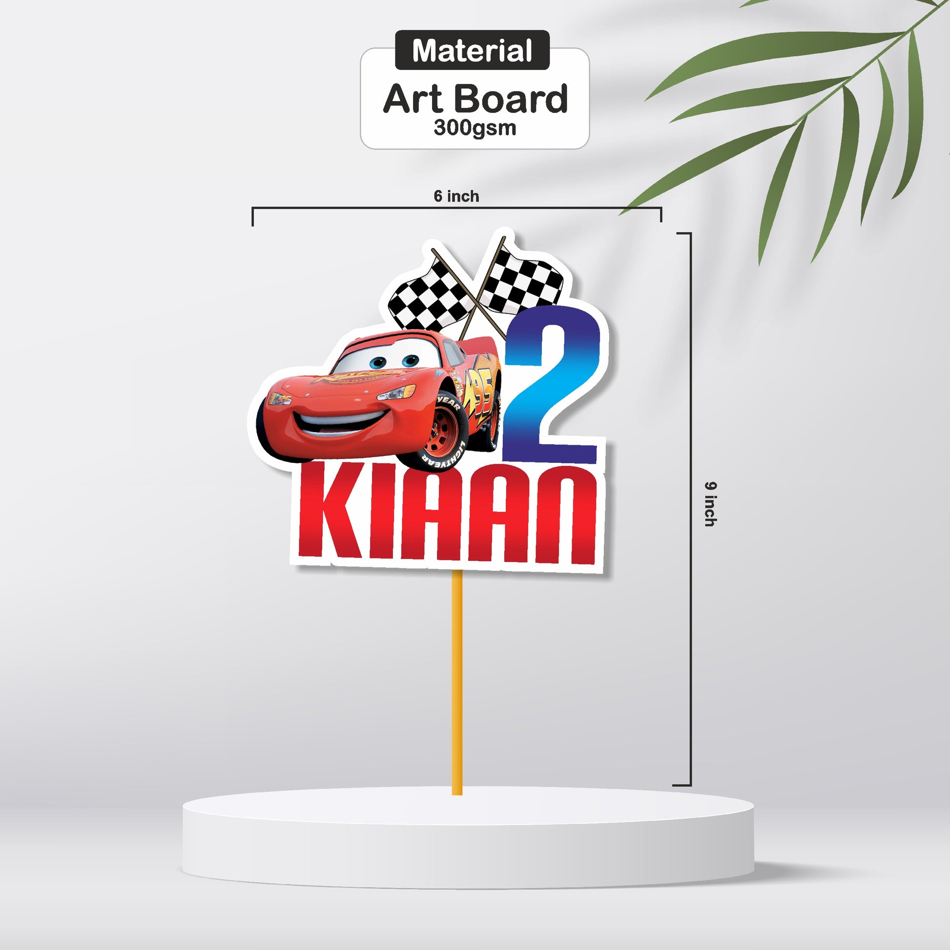 Top off the celebration with a personalized Lightning McQueen cake topper! Featuring the Piston Cup champion in a high-speed pose, this topper is the perfect finishing touch for any little racer's birthday cake. You can personalize it with the birthday child's name and age to make their big day extra fast and exciting!