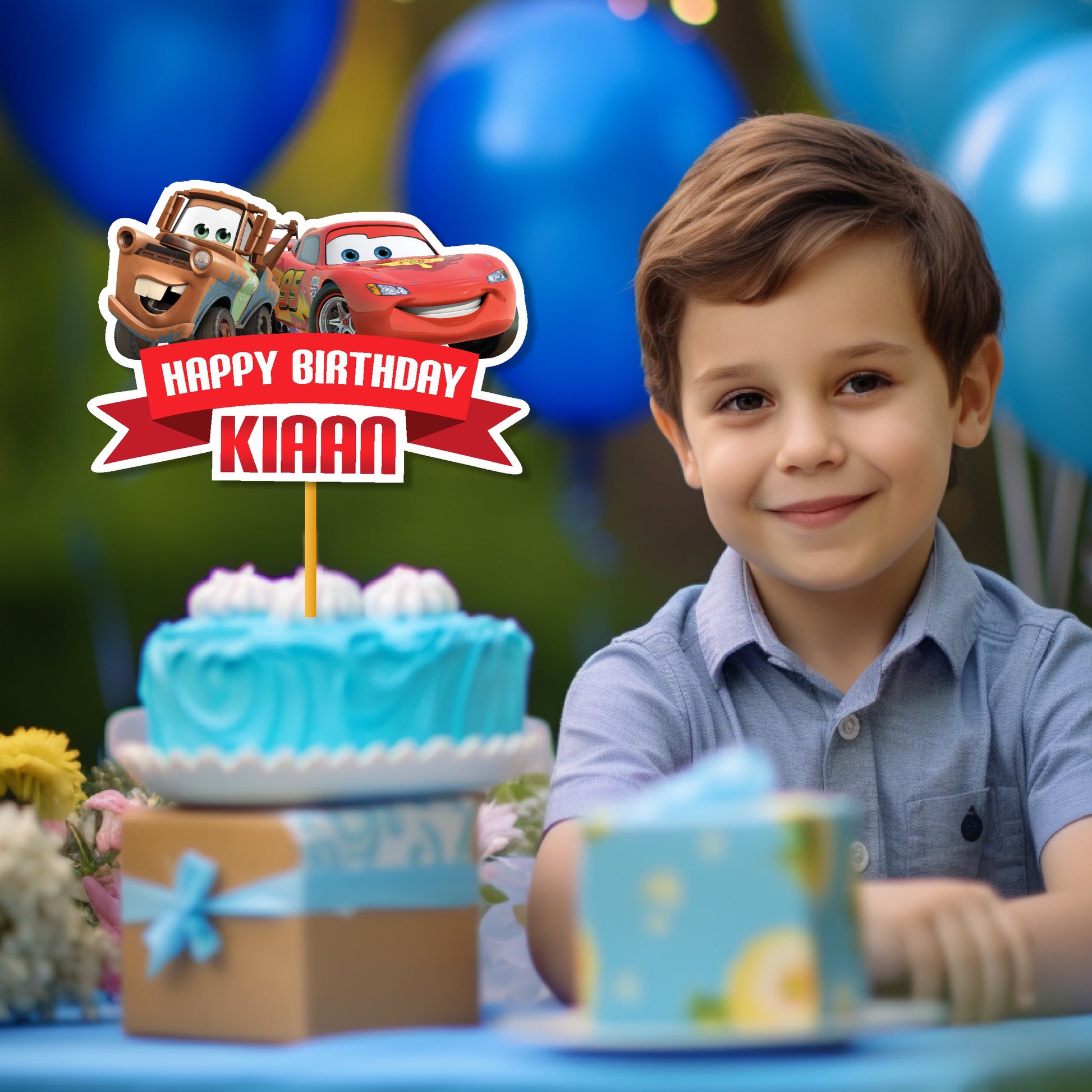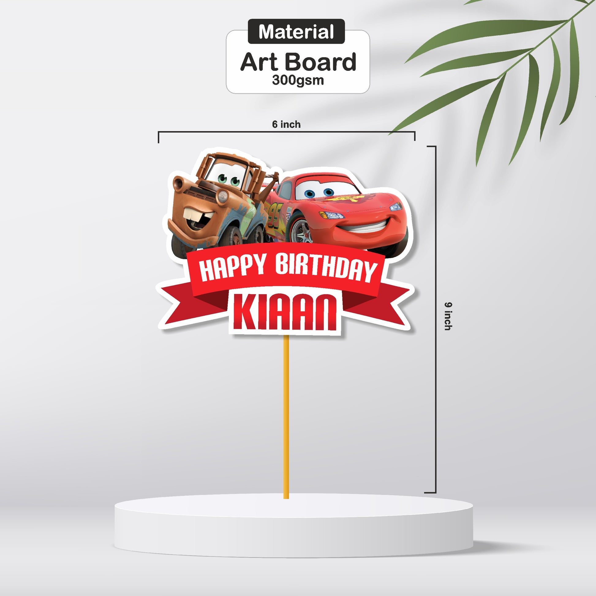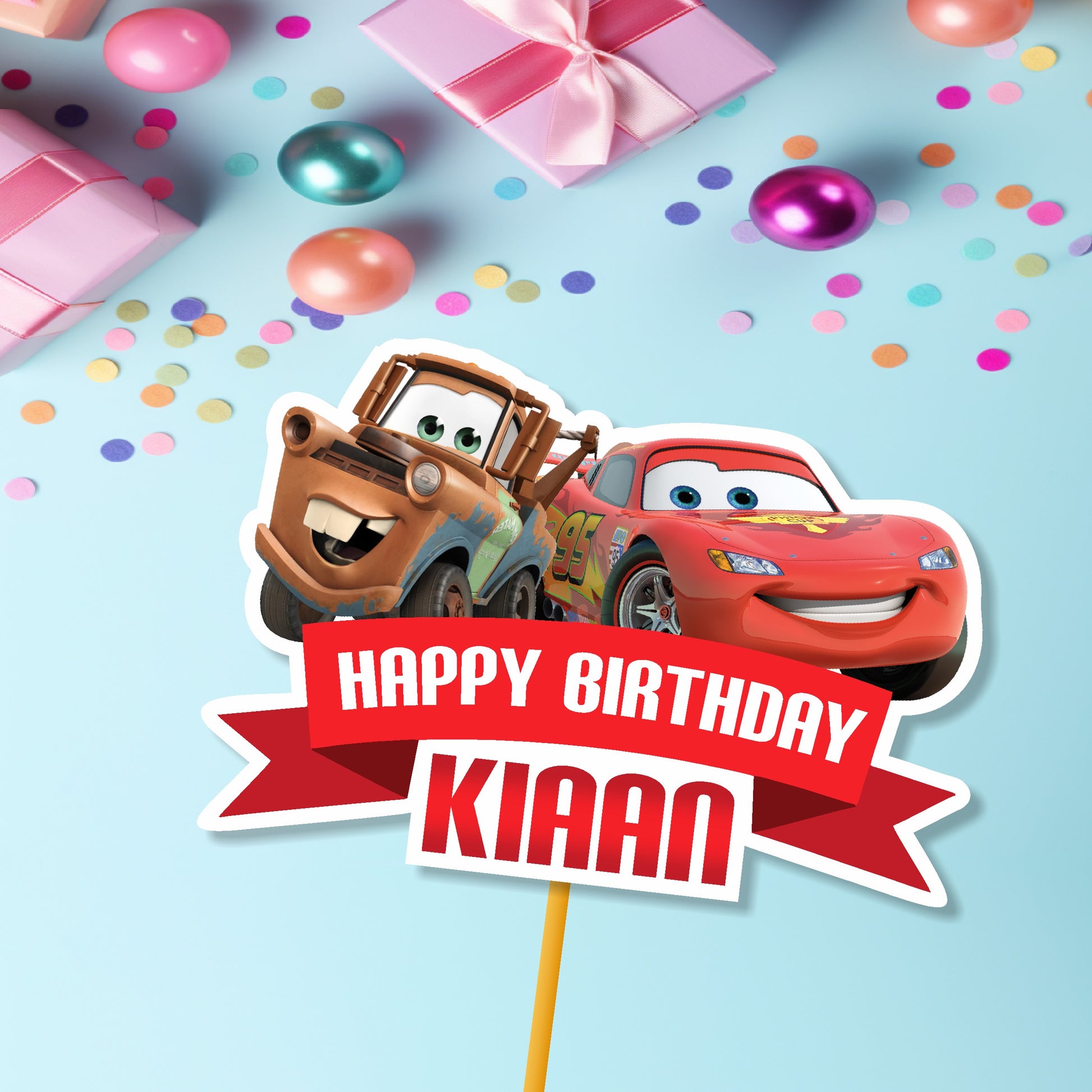 Top off the celebration with a personalized Lightning McQueen cake topper! Featuring the Piston Cup champion in a high-speed pose, this topper is the perfect finishing touch for any little racer's birthday cake. You can personalize it with the birthday child's name and age to make their big day extra fast and exciting!