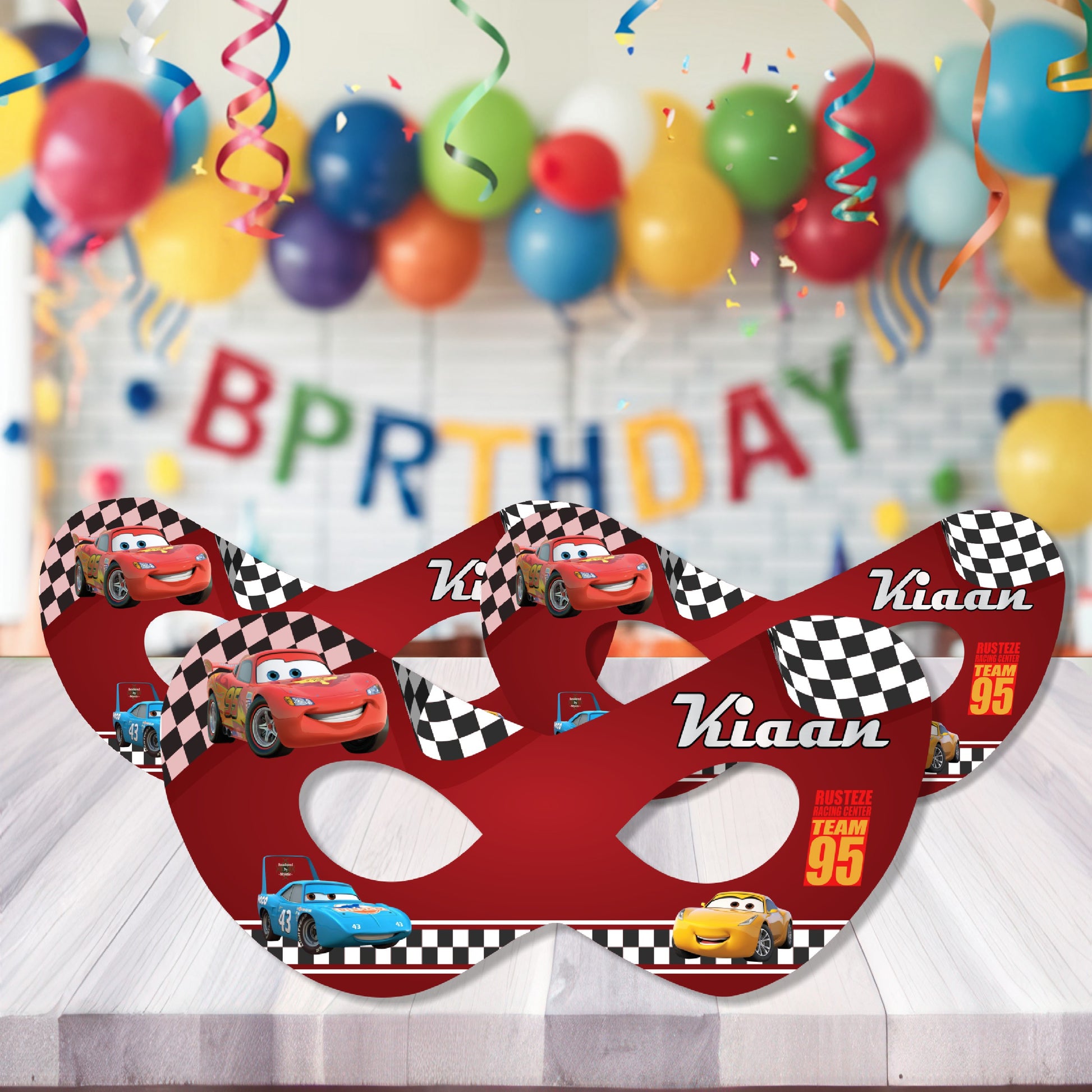Time for a champion pit stop! Our personalized Lightning McQueen Eye Masks feature awesome racing stripes and graphics inspired by the Piston Cup champion. Customize them with your child's name for a fun, unique party favor that provides a cozy accessory for quiet time or travel after their big race day.