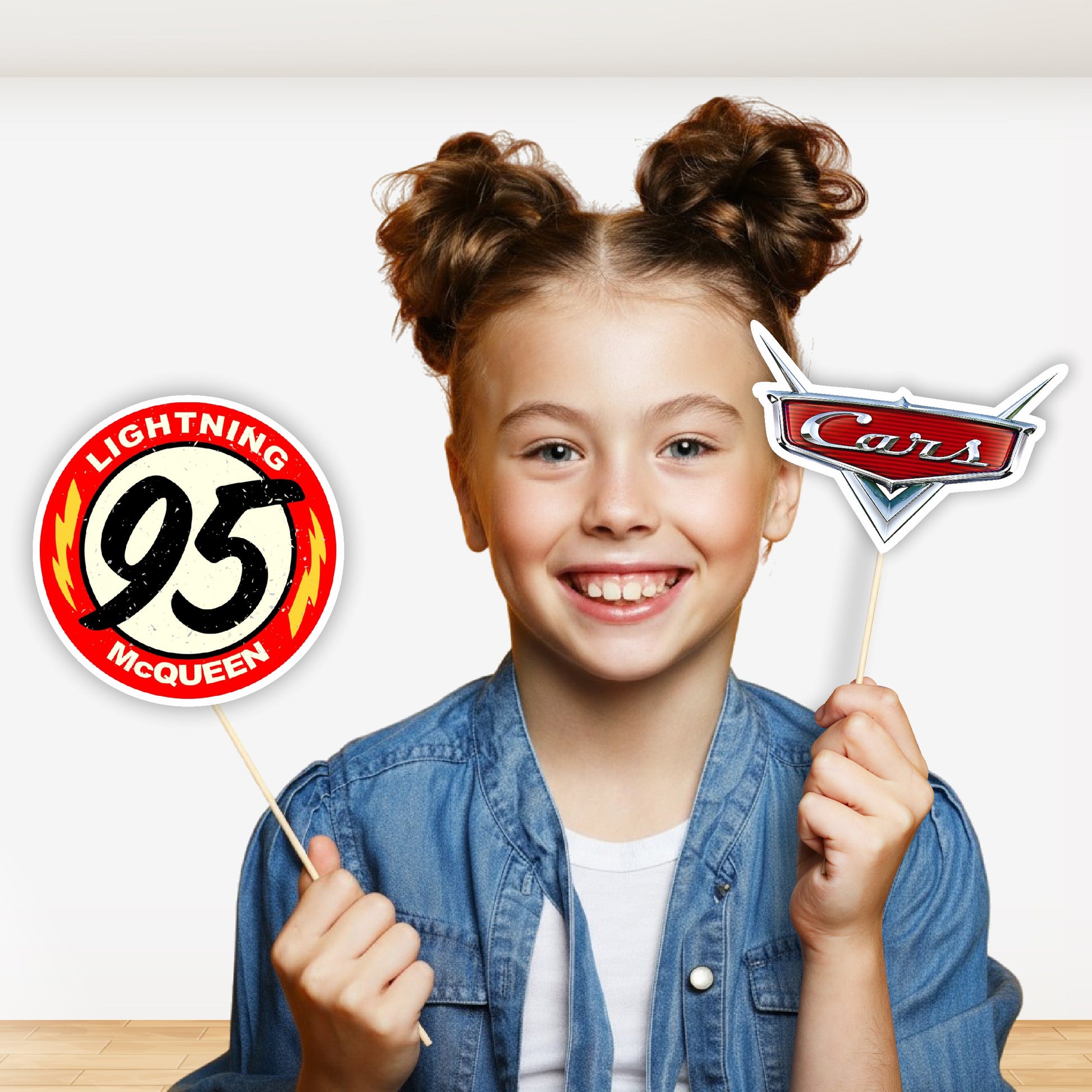 Start your engines and grab a prop! Our personalized Lightning McQueen photo booth props are essential for capturing high-speed memories. The set includes a variety of exciting, custom cutouts like Piston Cup Trophies, racing flags, iconic tires, speech bubbles with racer phrases. memorable element to your high-octane celebration!