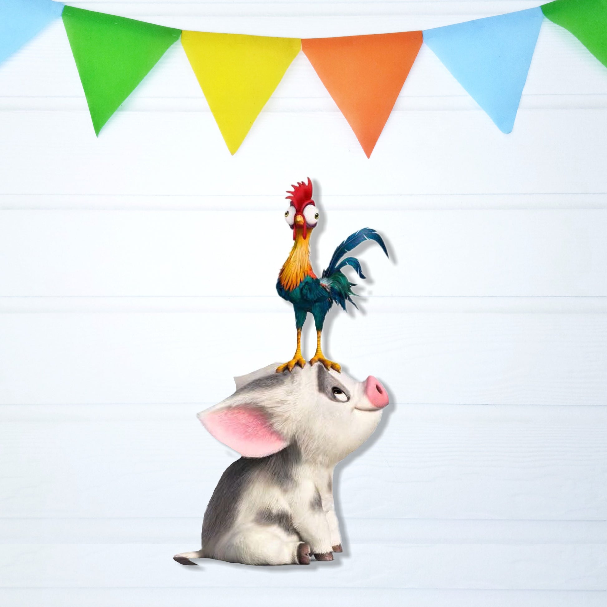 The ocean is calling! Bring the spirit of Motunui to your party with personalized Moana character cutouts! These custom props feature Moana, Maui, Pua, and Heihei. They're perfect for decorating the walls, creating an island-themed photo area, or placing on tables for an adventurous touch!