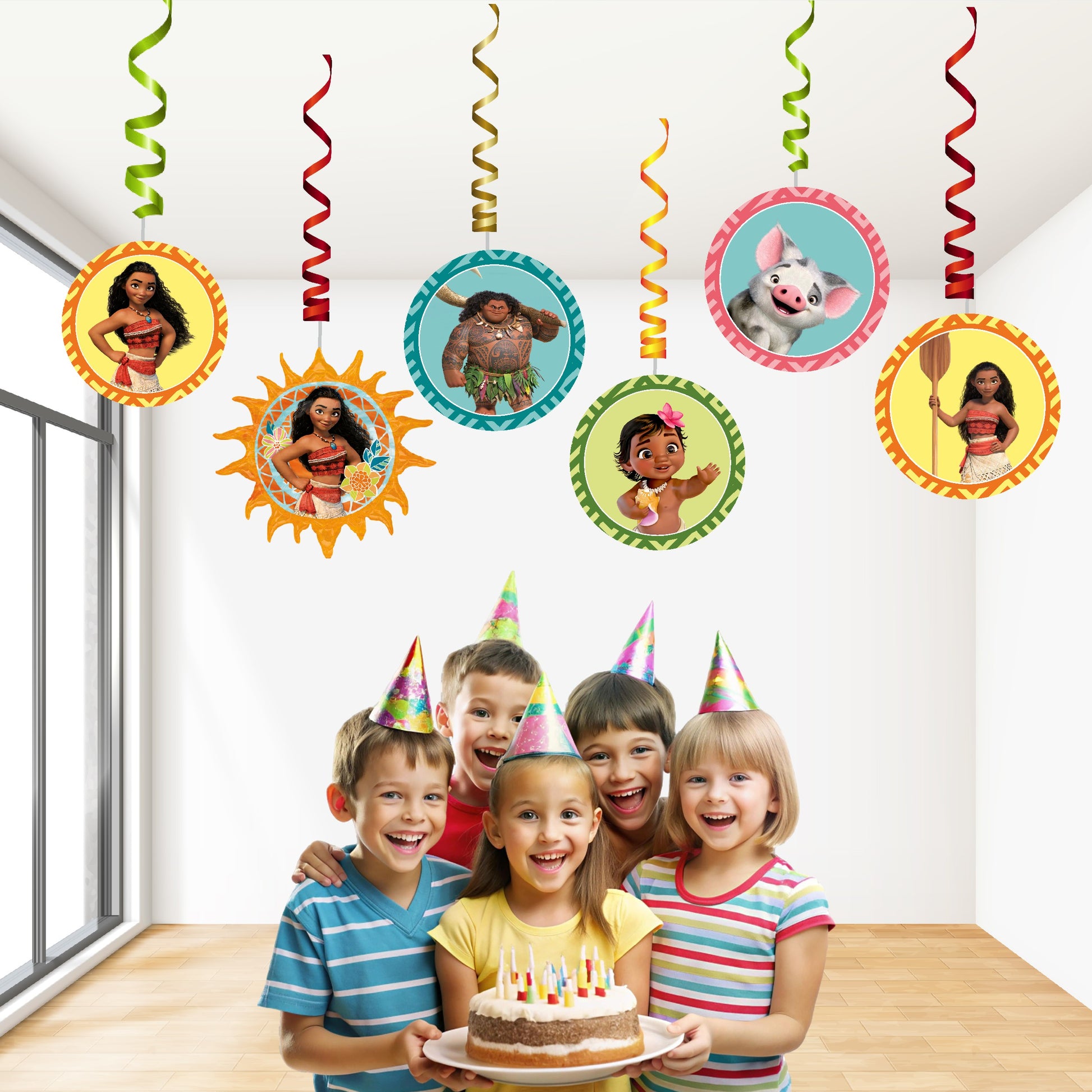 Add some delightful, oceanic movement to your decor with personalized Moana Hanging Swirls! Each spiral features a fun cutout of Moana, Maui, Pua, or a tropical flower. making your party feel whimsical, fun, and ready for an adventure!