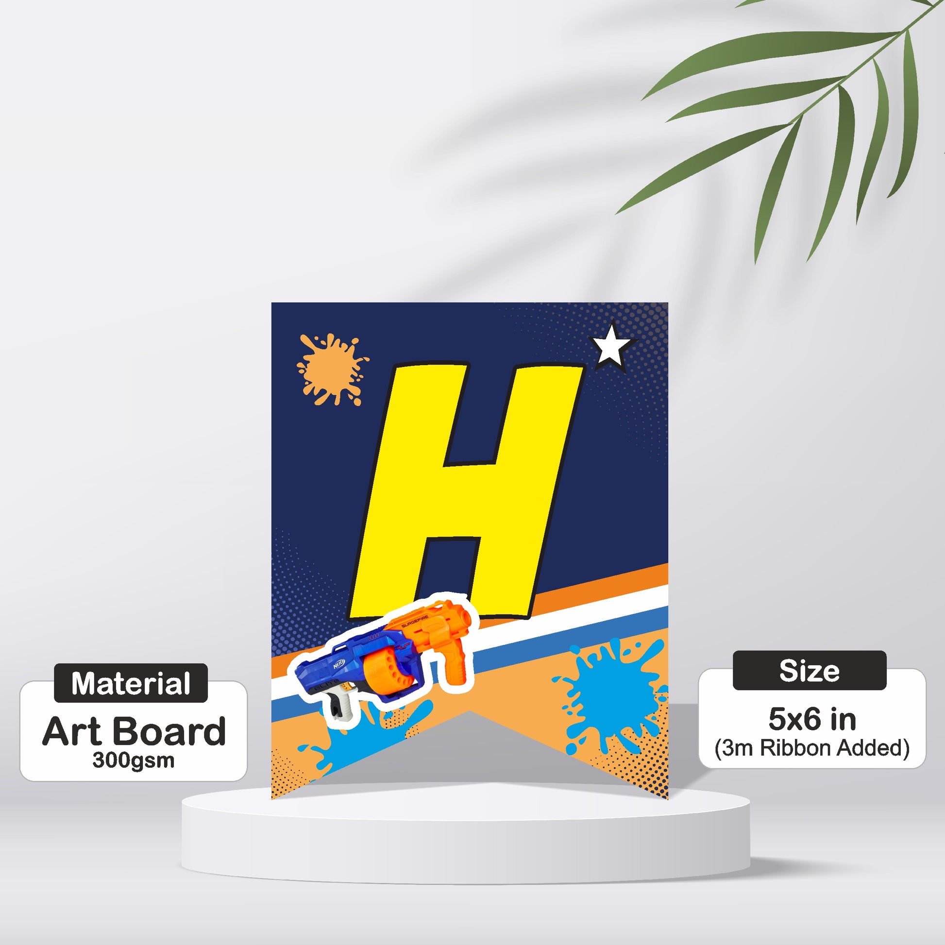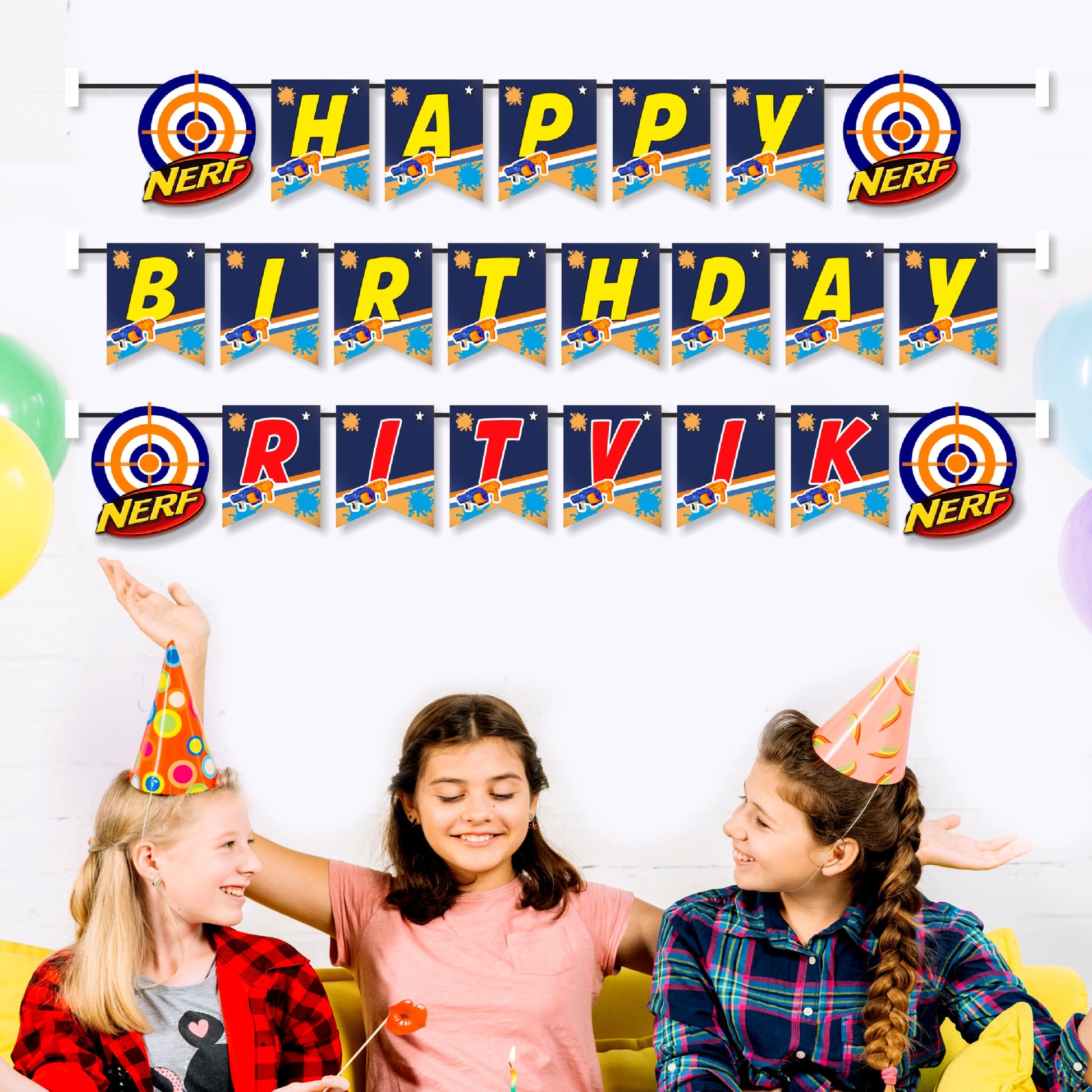 Make the little commander feel like the star of the mission with a personalized Nerf Gun Name Bunting! This action-packed banner features flags with blasters, targets, and foam darts perfectly spelling out your child's name. It's the ultimate decoration to bring the energy and excitement of the foam battle right to your party!