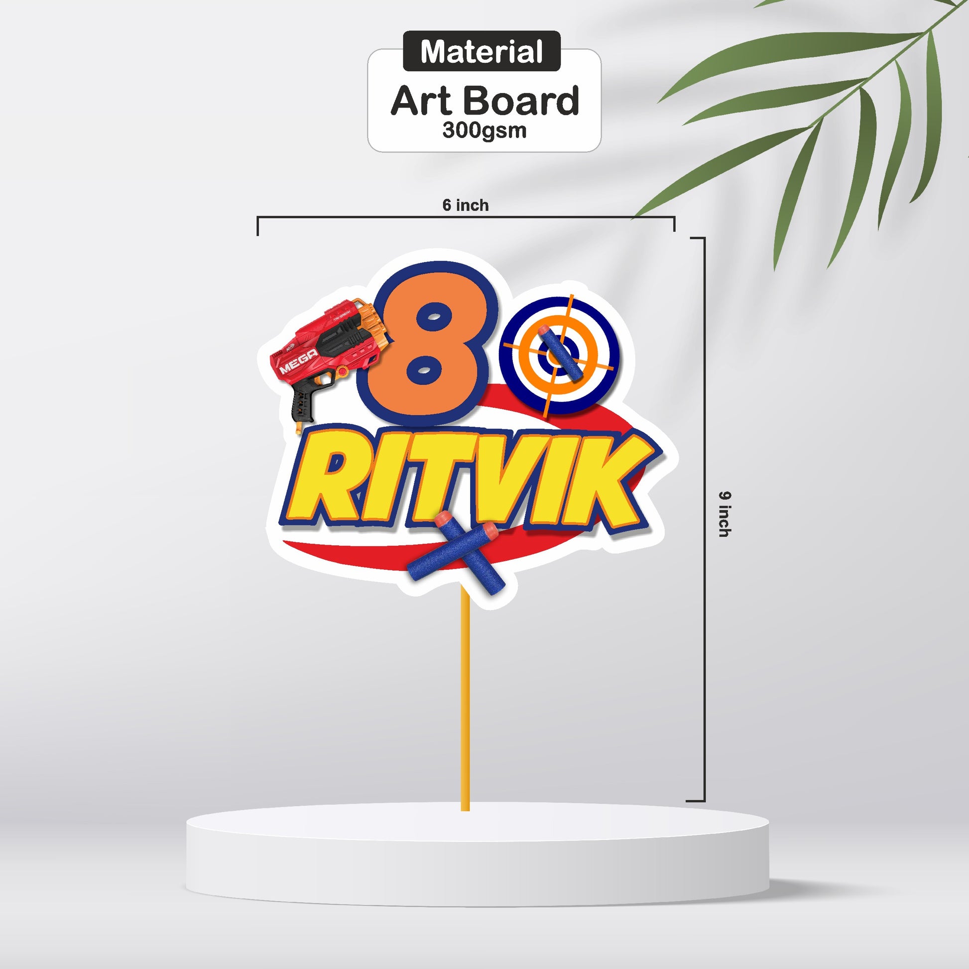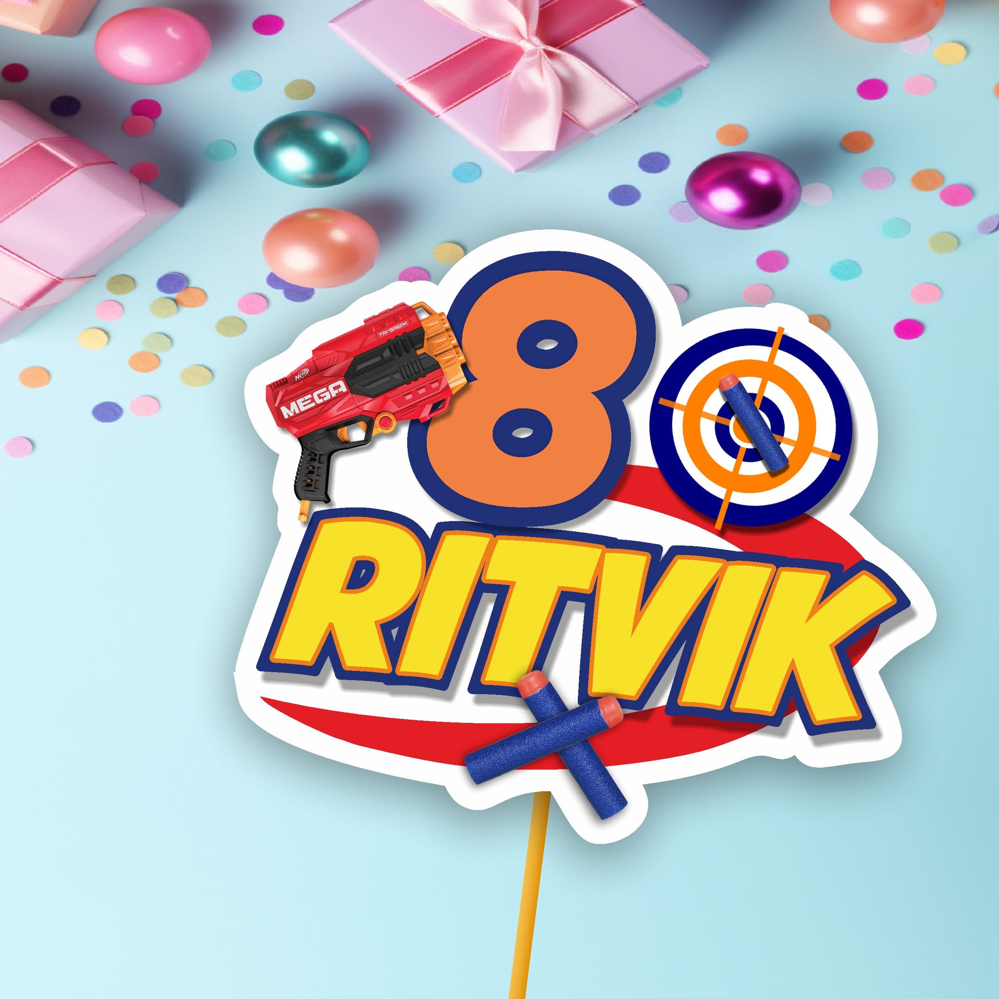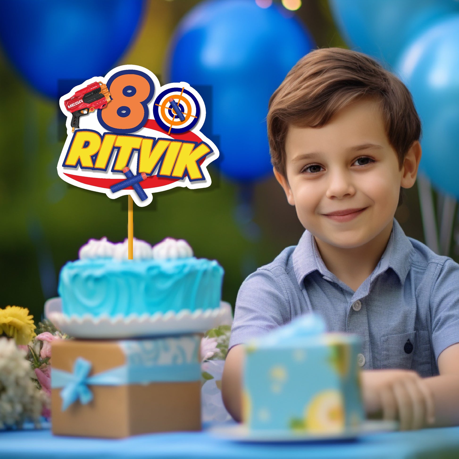 Top off the celebration with a personalized Nerf Gun cake topper! Featuring an iconic blaster and a flying foam dart, this topper is the perfect finishing touch for any little warrior's birthday cake. You can personalize it with the birthday child's name and age to make their big day extra action-packed!