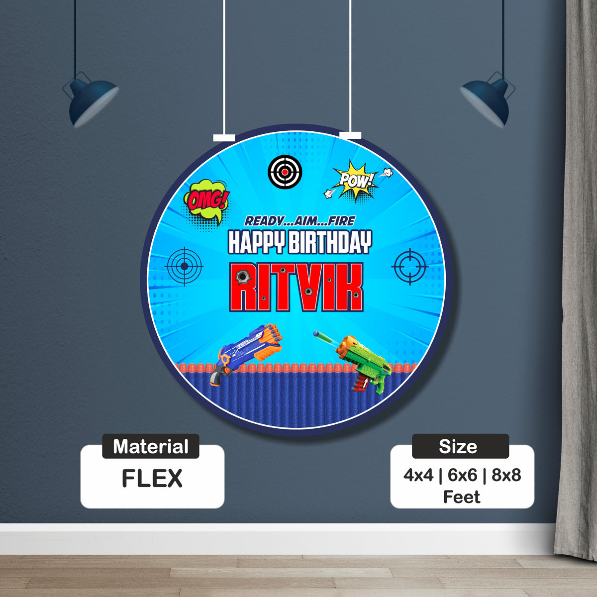 Nerf Gun Theme Customized Round Backdrop