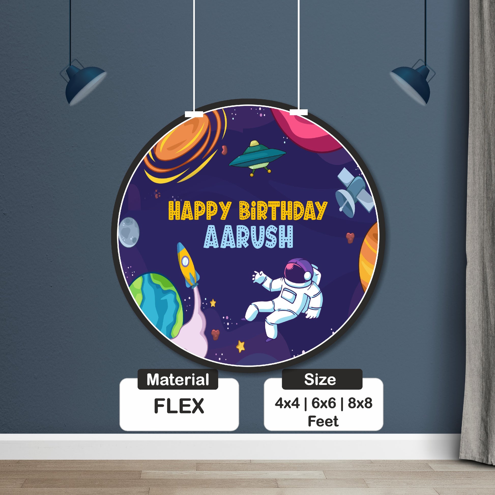 Welcome to Mission Control! Our custom Space-Themed Round Banner is designed with deep indigo and starry black backgrounds, showcasing realistic images of the Earth, the Moon, and a bold spacecraft. This high-quality banner is fully personalized with your child's name and age (or their "Mission Commander" title). It's the perfect statement piece to transform your party space into an immersive, galaxy-spanning adventure!