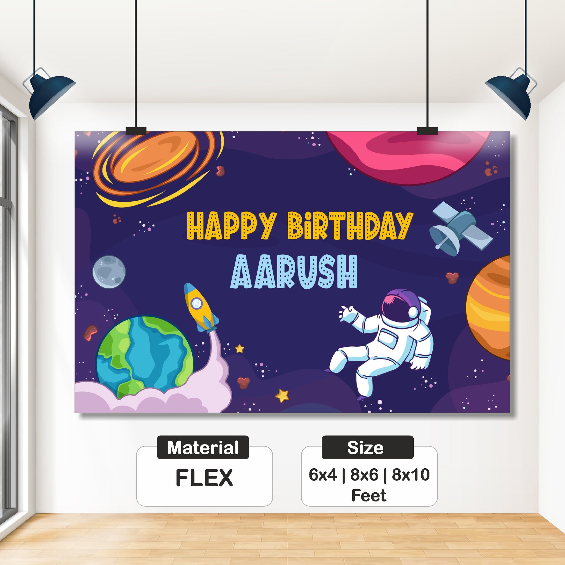 Welcome to Mission Control! Our custom Space-Themed Banner is designed with deep indigo and starry black backgrounds, showcasing realistic images of the Earth, the Moon, and a bold spacecraft. This high-quality banner is fully personalized with your child's name and age (or their "Mission Commander" title). It's the perfect statement piece to transform your party space into an immersive, galaxy-spanning adventure!