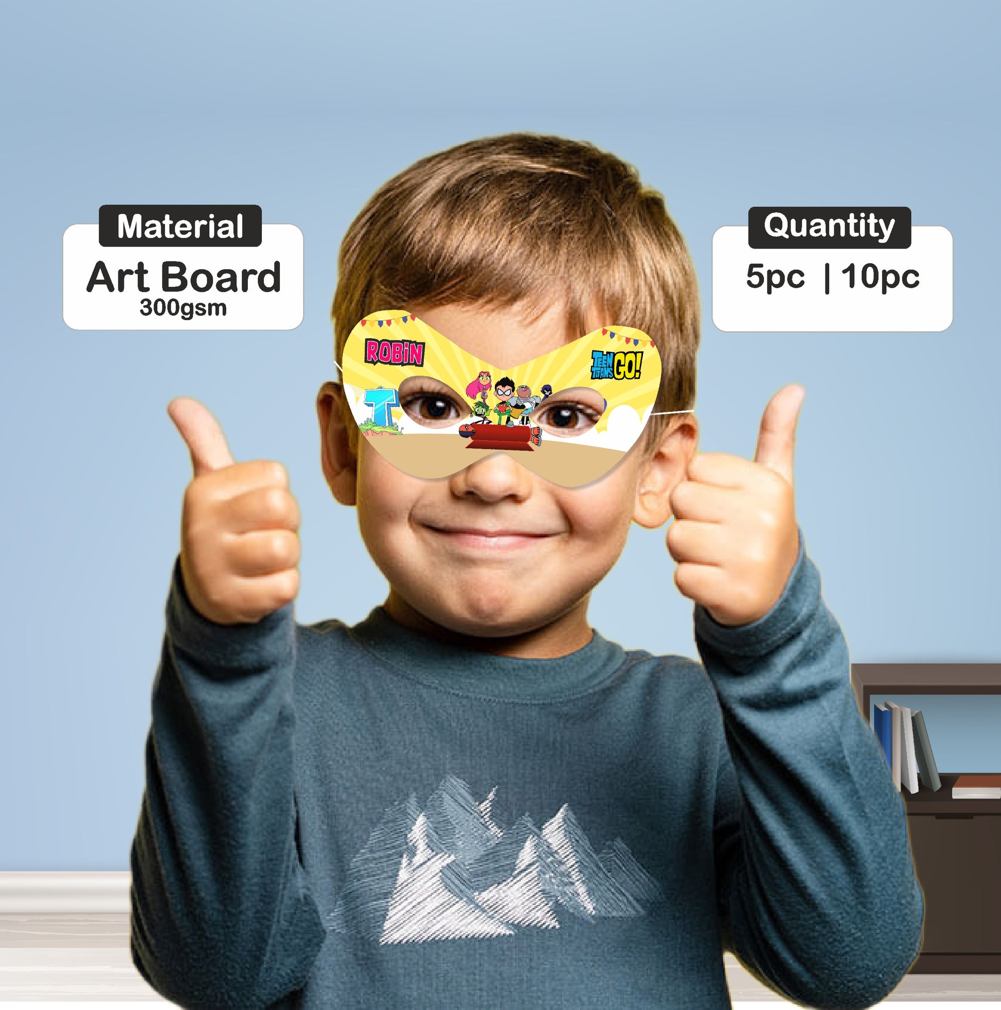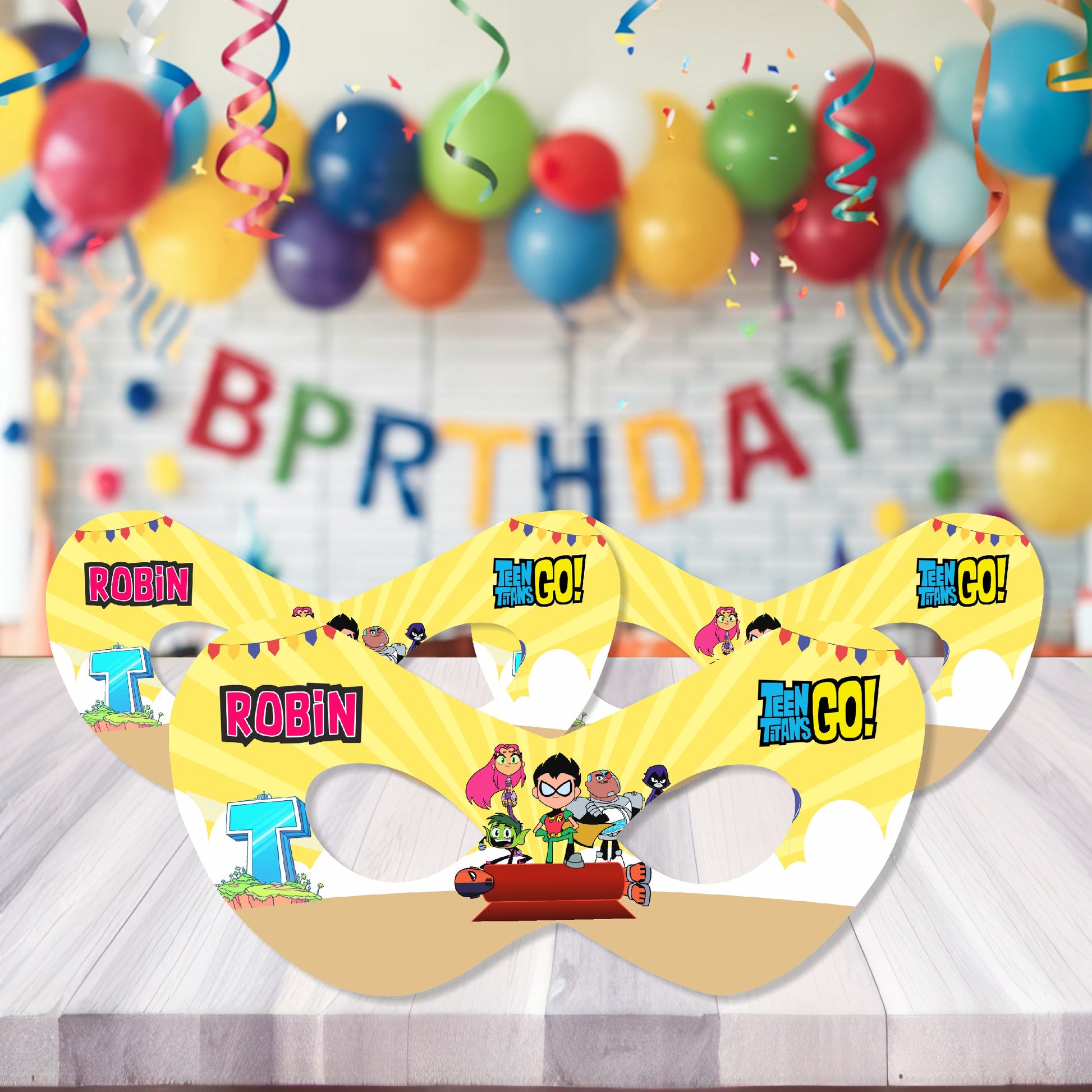 "The ultimate hero accessory!" Get our premium customized Teen Titans theme birthday decoration eye masks. Designed to blend with your Teen Titans theme decorations using soft, kid-friendly materials. Essential for action-packed Teen Titans party decorations. Order your Teen Titans birthday party decorations today!