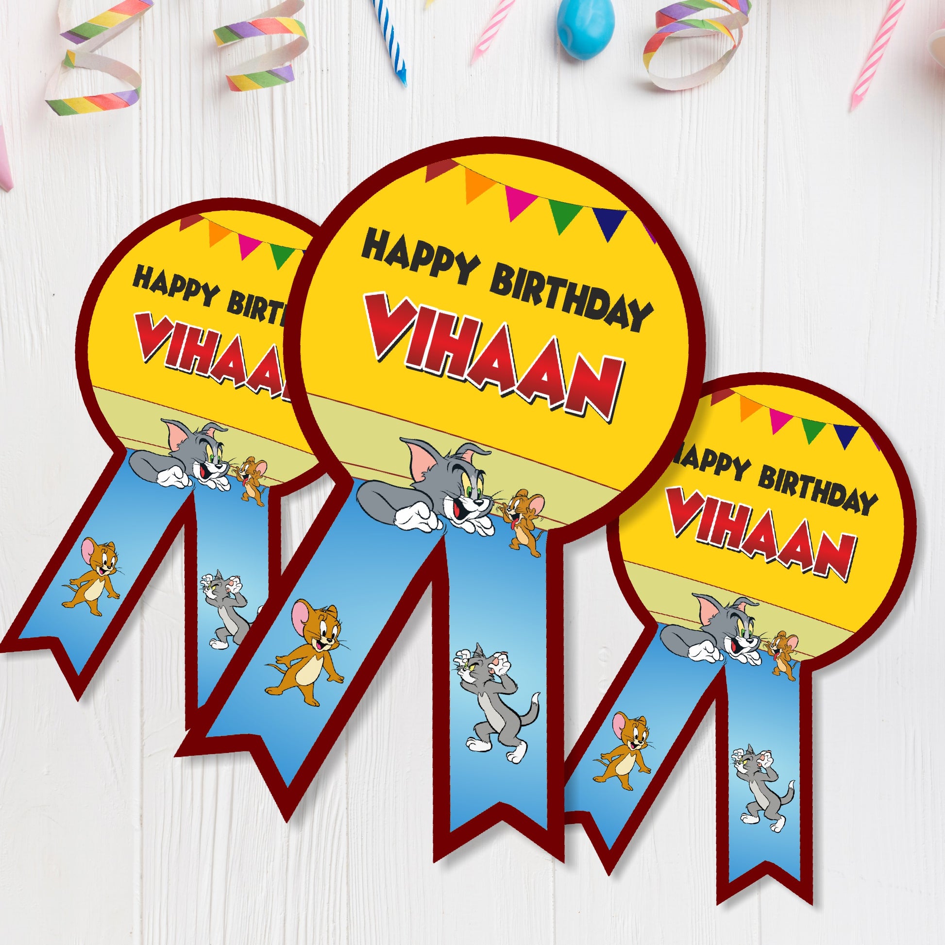 The birthday star is here! Make your little one the ultimate leader of the chase with a personalized Tom & Jerry birthday badge! This custom pin features the hilarious duo in a fun pose or perhaps a giant piece of cheese, and can be customized with your child's name, age, or the playful title "Head Mouser" or "Master Planner." It's the perfect, charming accessory to make them feel like the star of the show!