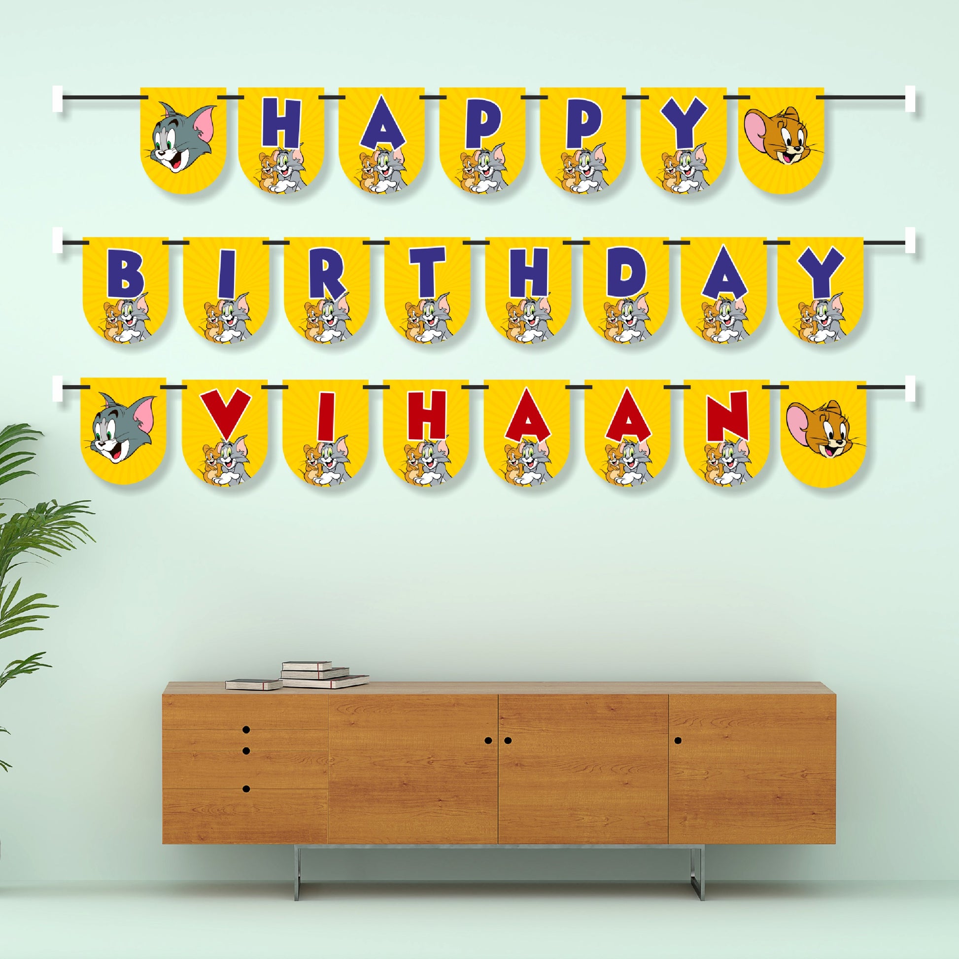 Make the little star feel like the celebrity of the cartoon caper with a personalized Tom & Jerry Name Bunting! This adorable banner features colorful flags with Tom, Jerry, and playful icons (like cheese or a mouse hole) perfectly spelling out your child's name. It's the ultimate decoration to bring a touch of classic cartoon charm right to your party!