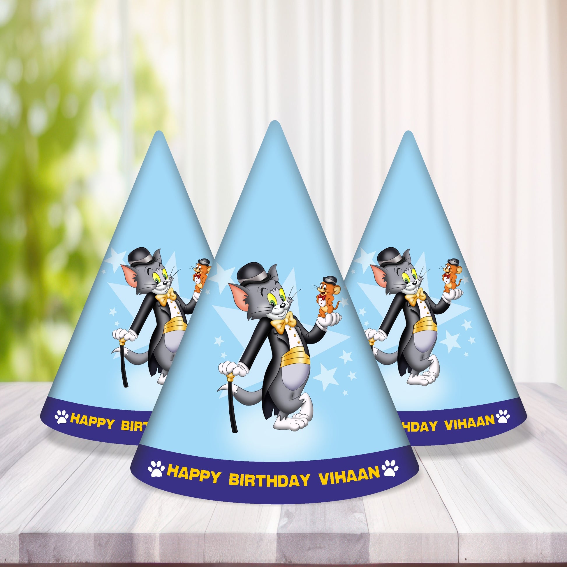 Get ready for some cartoon chaos with a personalized Tom & Jerry birthday hat! These fun cone hats feature action-packed graphics of the hilarious duo—perhaps Tom looking grumpy or Jerry looking sly. They can be customized with your child's name or age, making them the perfect accessory to crown every little guest the winner of the great chase!