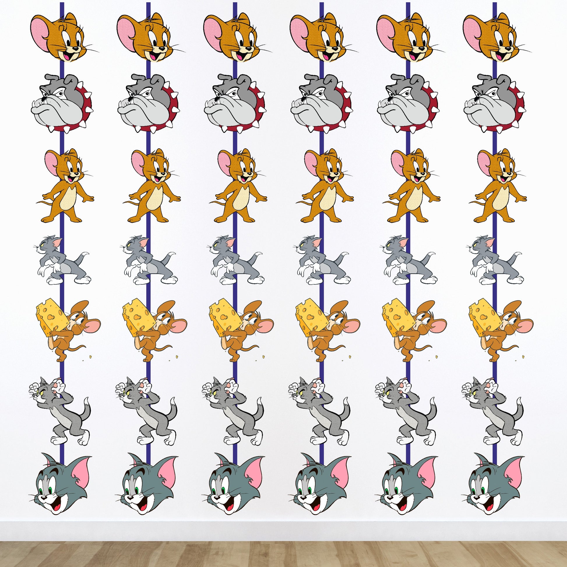 Add some whimsical cartoon chaos to your party with personalized Tom & Jerry Hanging Danglers! These decorations feature awesome cutouts of Tom chasing Jerry, giant wedges of cheese, and funny sound effects on colorful spirals, perfect for hanging from the ceiling. bringing the playful spirit of the classic cartoon right into your party space!