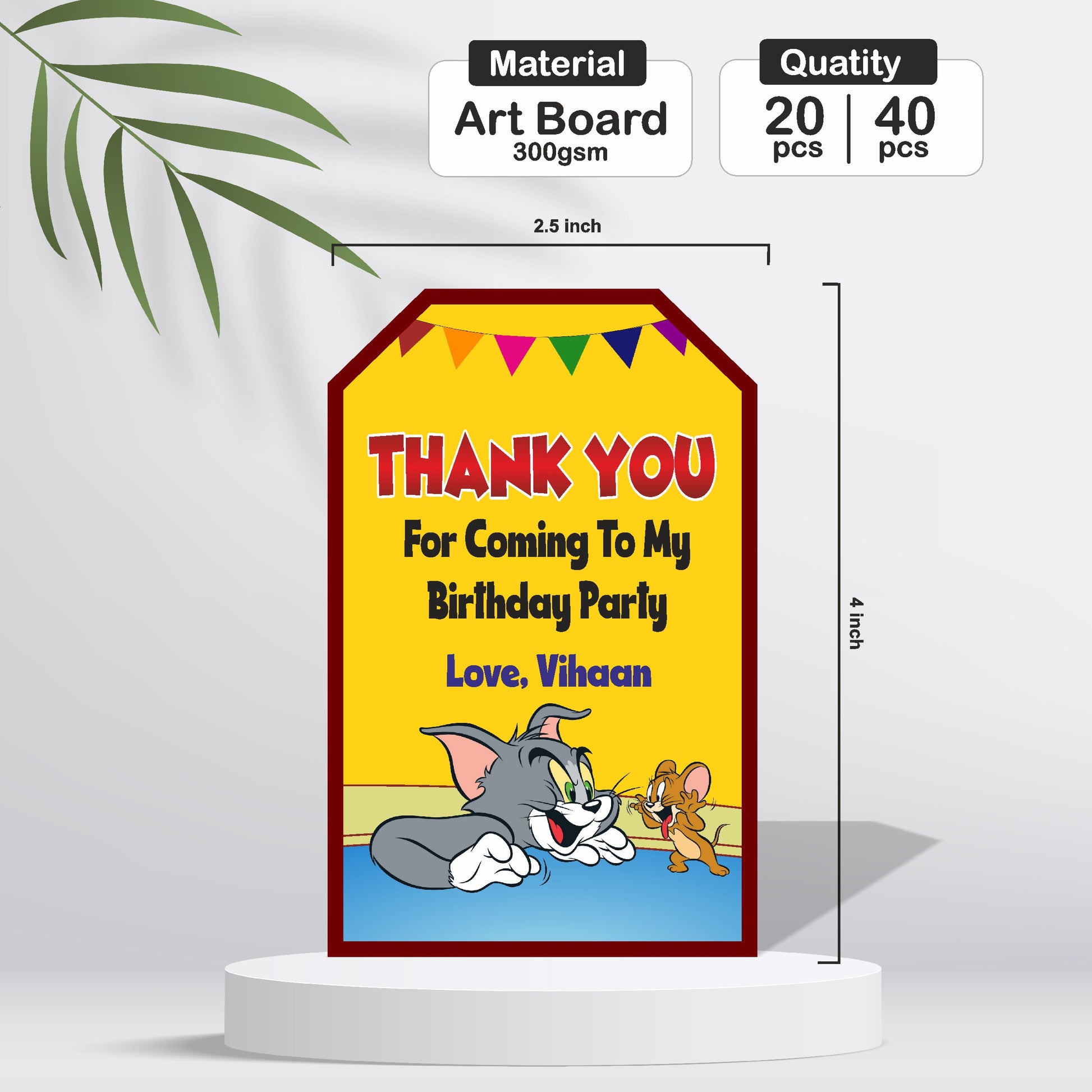 Add a classic finishing touch to your favors with personalized Tom & Jerry birthday tags! Featuring the hilarious duo in a funny pose or with a giant piece of cheese, these tags are the perfect way to label your party bags or gifts. Customize them with a sweet "Thanks for the Fun!" message and your child's name!